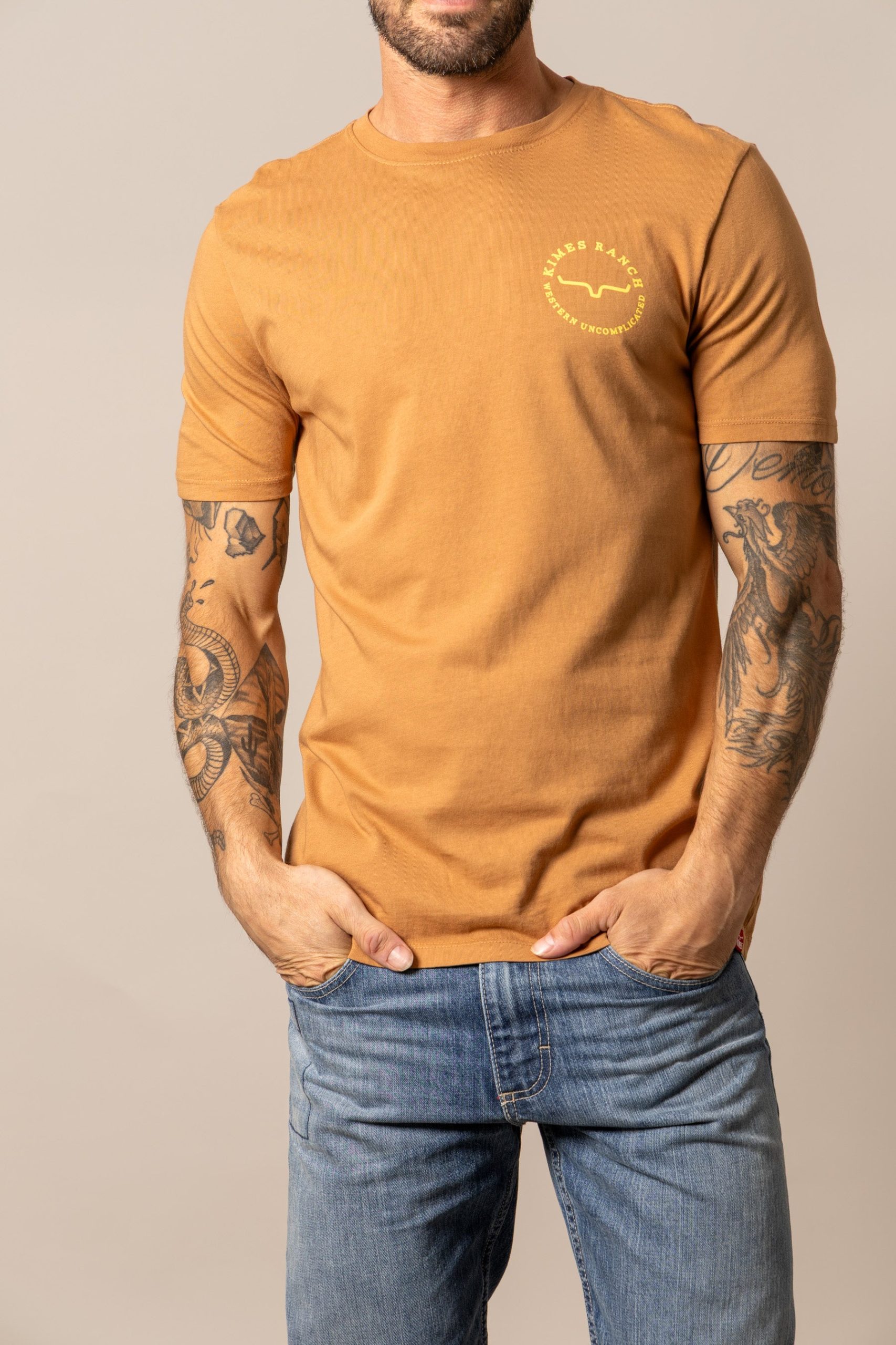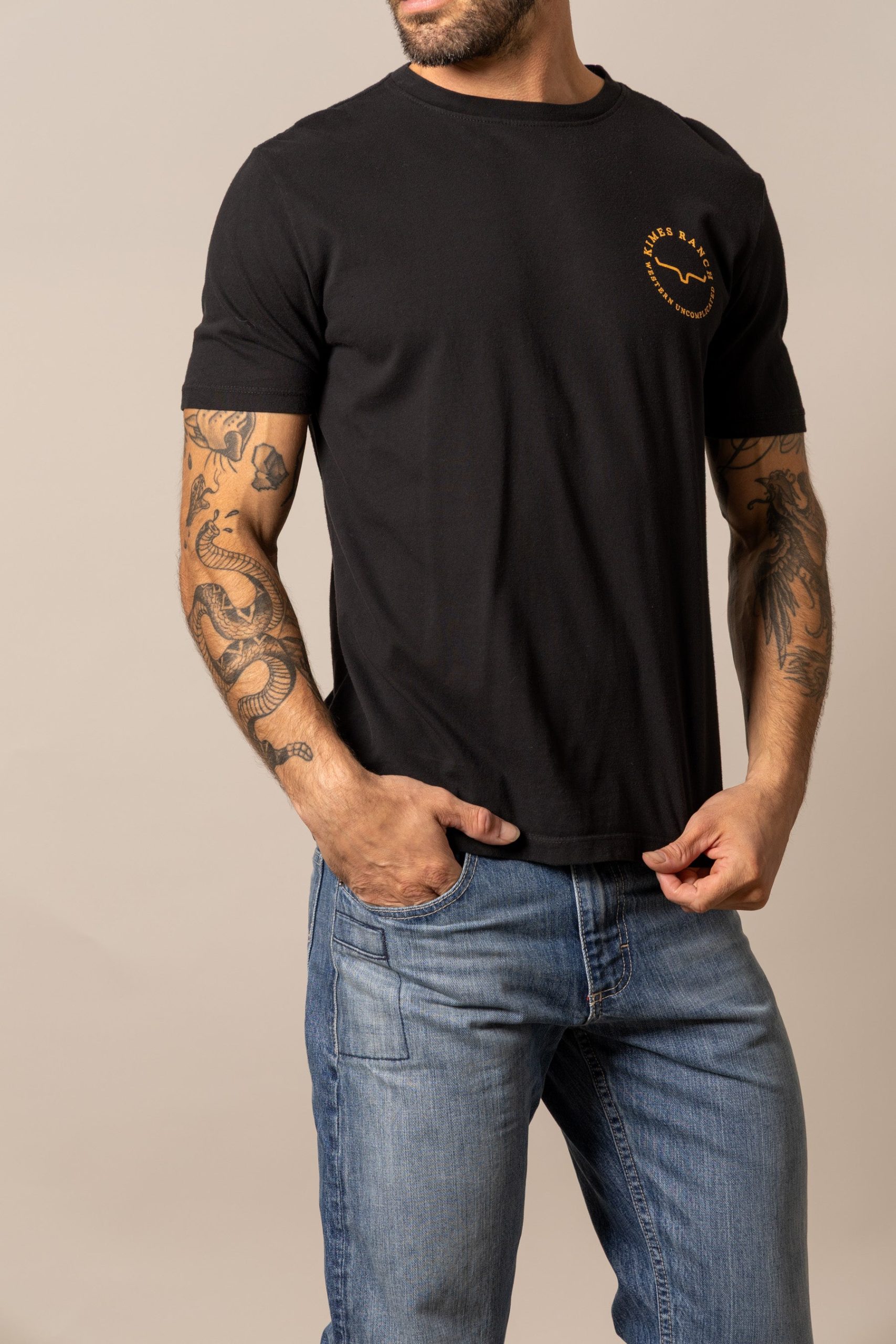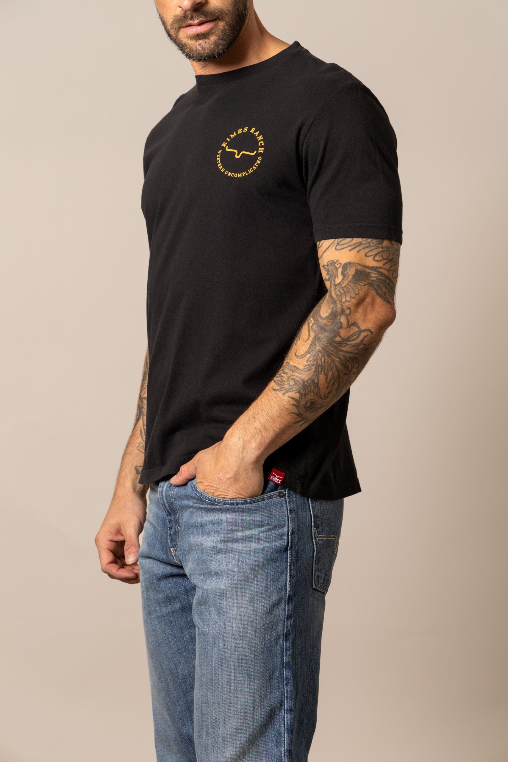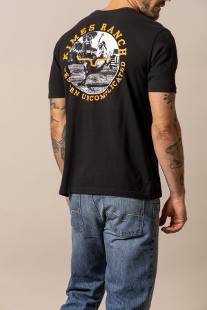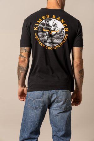 Classic from the front. bold from the back. This men’s tee features a small Kimes Ranch logo on the chest and a striking black-and-white photo graphic on the back—capturing a cowboy mid-ride on a bucking horse. Framed by the words Kimes Ranch Western Uncomplicated. it’s a tribute to grit. heritage. and the beauty of keeping things simple. Made from soft. durable cotton with a comfortable fit built for everyday wear.