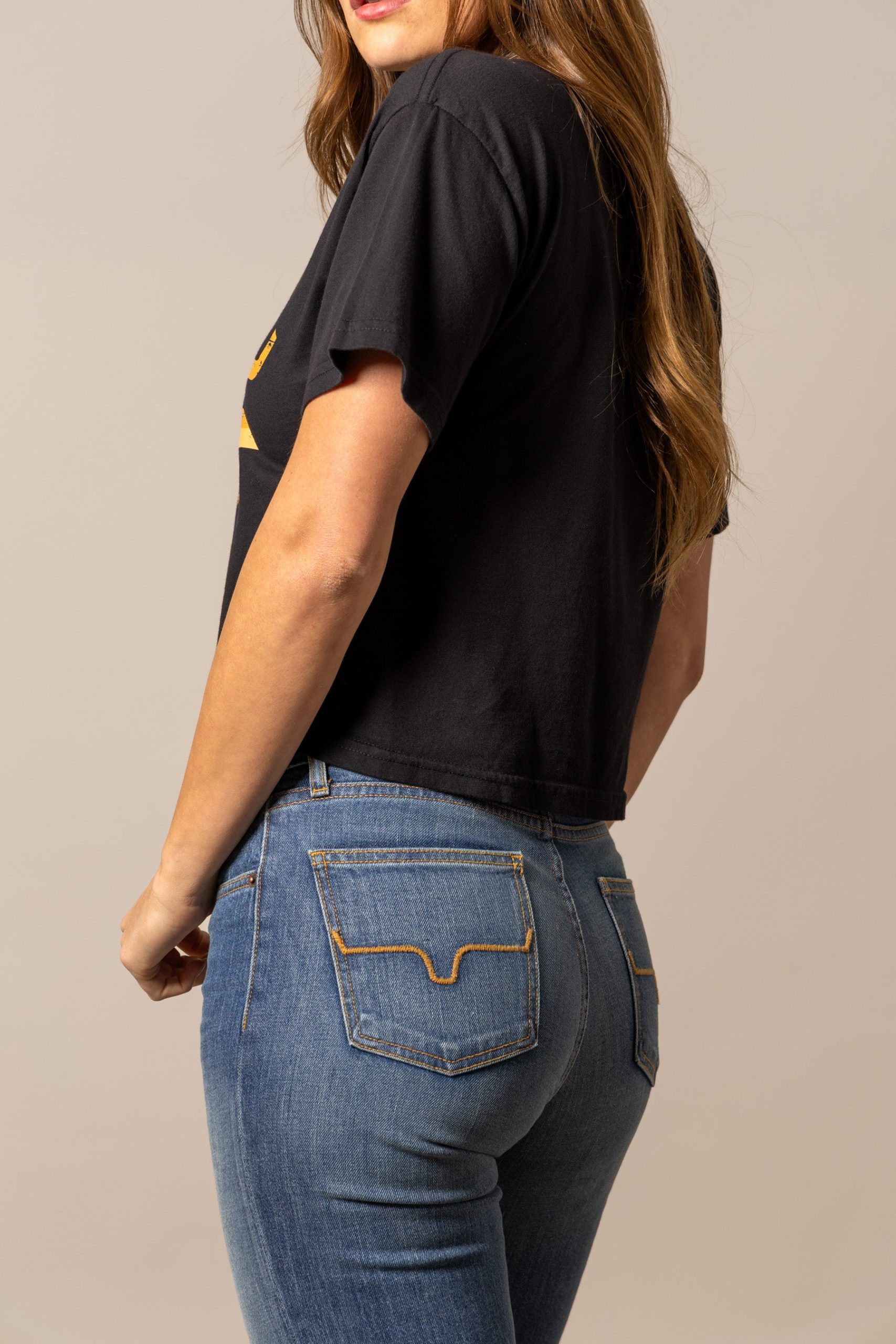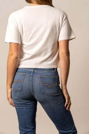 The Abiquiu Cropped Tee blends modern cowgirl style with bold western graphics. Featuring a striking geometric design across the chest. this tee is made from soft 100% cotton for all-day comfort. The boxy. cropped fit creates a contemporary silhouette that’s easy to pair with high-rise jeans or shorts. Available in versatile colors. the Abiquiu is perfect for casual days. concerts. and everyday ranch life.