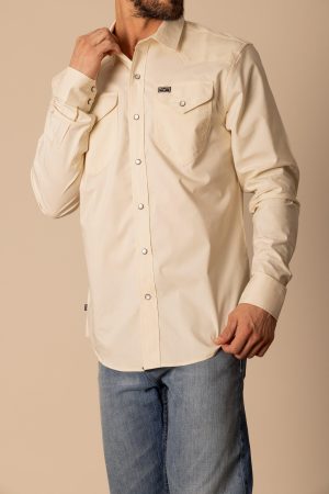 Details: Long Sleeve. Matching Pearl Snap Button Front. Double Flap Snap Pockets At Chest. Solid Dye. Western Yoke. Longhorn Logo Patch On Pocket