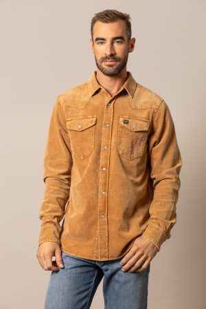 Details: Corduroy texture. double chest pockets. snap buttons