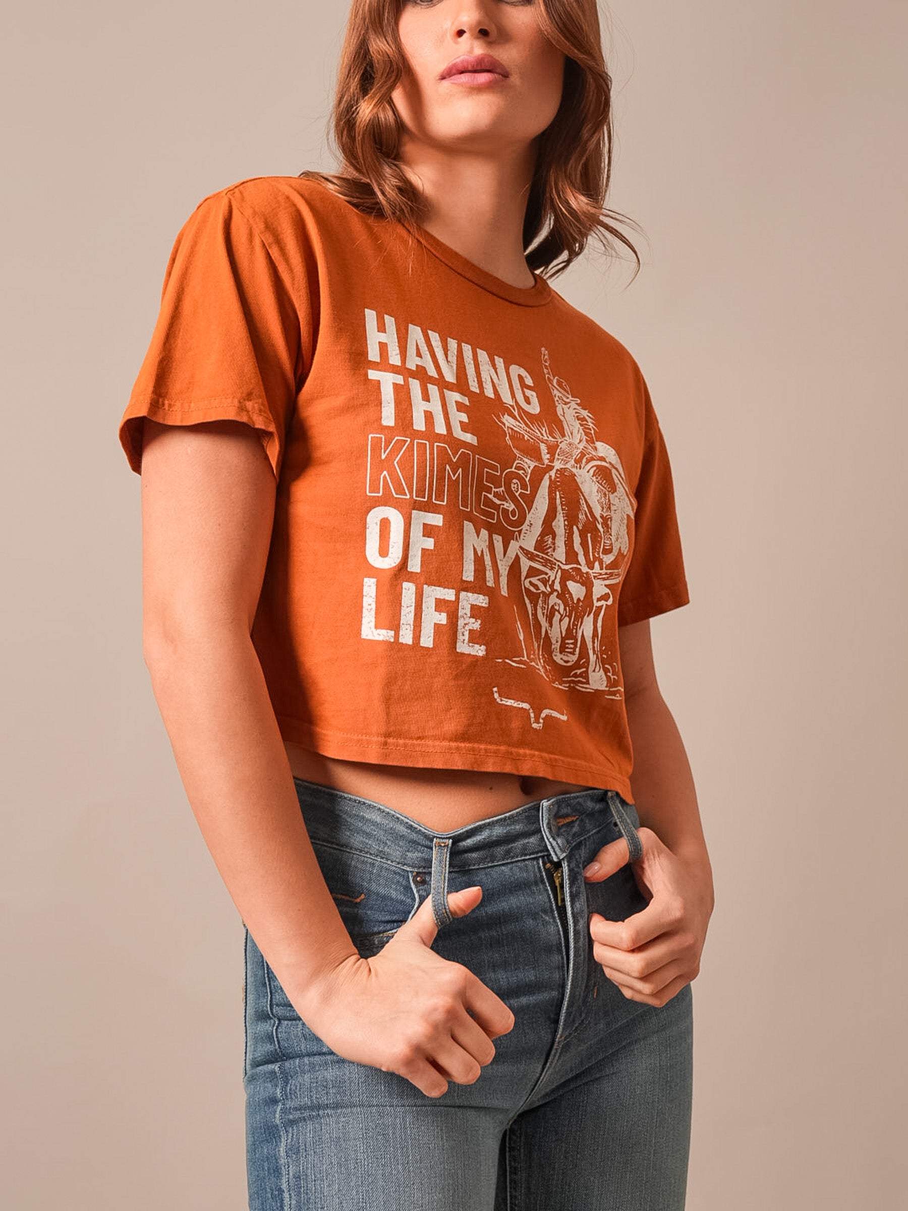 A fresh take on western fun. With a cropped fit and playful Kimes of My Life graphic. this tee brings a carefree vibe to your everyday look.