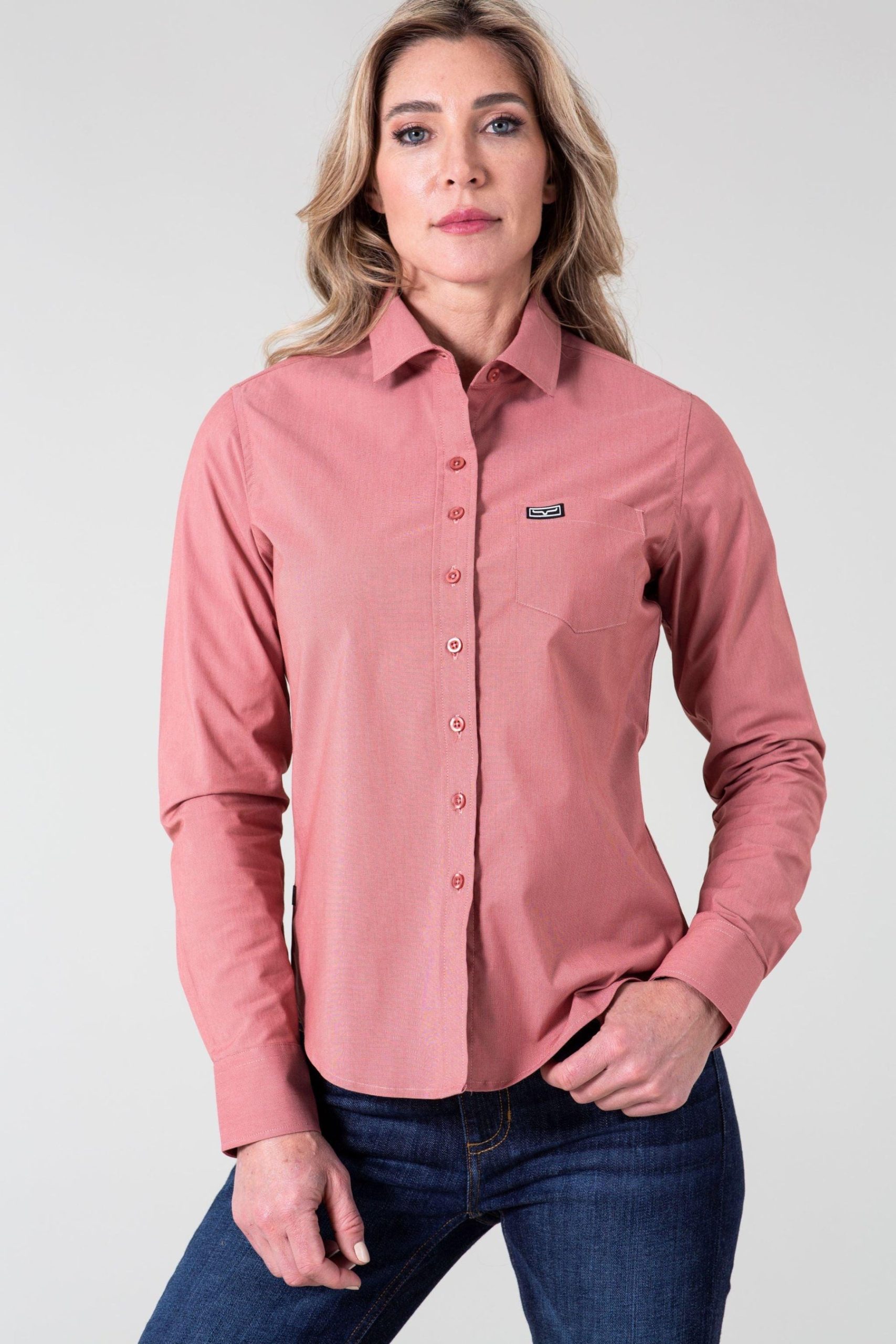 A modern take on a classic women’s western shirt. the Linville Solid is a stylish staple piece in any wardrobe. Moisture wicking Coolmax® fabric allows for easy seasonal transition while the classic button front and single pocket with timeless western tailoring that flatters the figure. The solid variety of colors go with anything. The Linville can be dressed up or styled casually – whatever meets your style.
