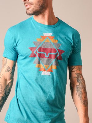 A bold take on a classic. This men’s tee features the iconic Kimes Ranch logo framed by a Southwestern-inspired pattern. bringing color. texture. and western character to your everyday look.