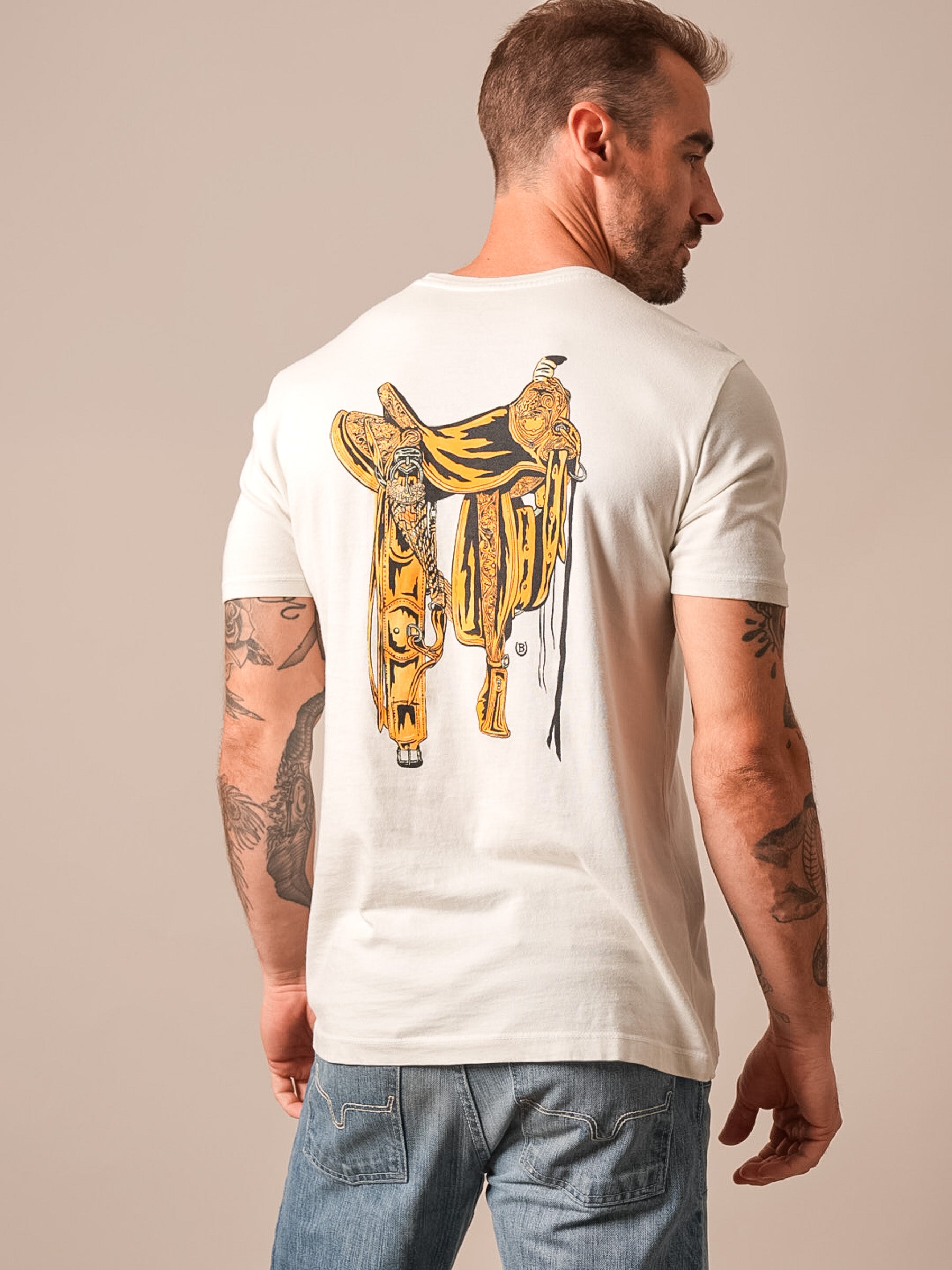 This shirt is a collaboration with Lucky B Designs. Each piece captures the essence of Western heritage. crafted with the dedication and skill David brings to his art. This isn’t just apparel. it’s a tribute to craftsmanship. heritage. and the enduring spirit of the American West.