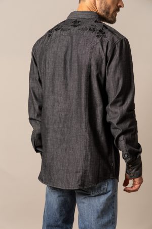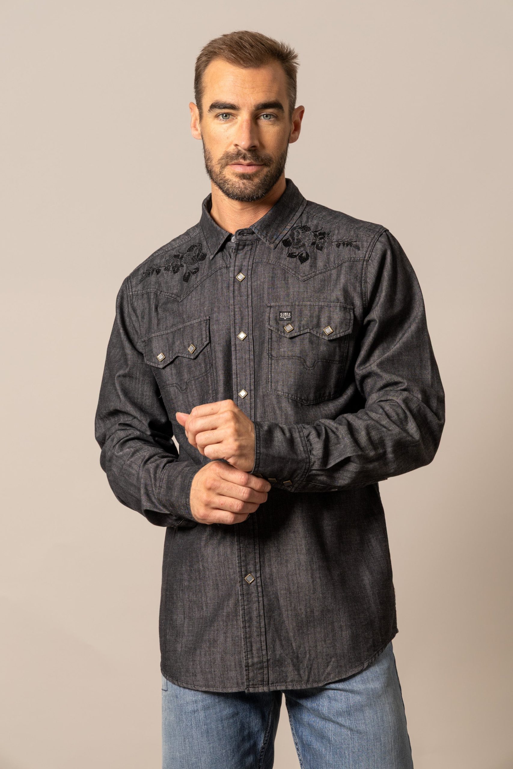 Details: Western yoke. double chest pockets with embroidered logo