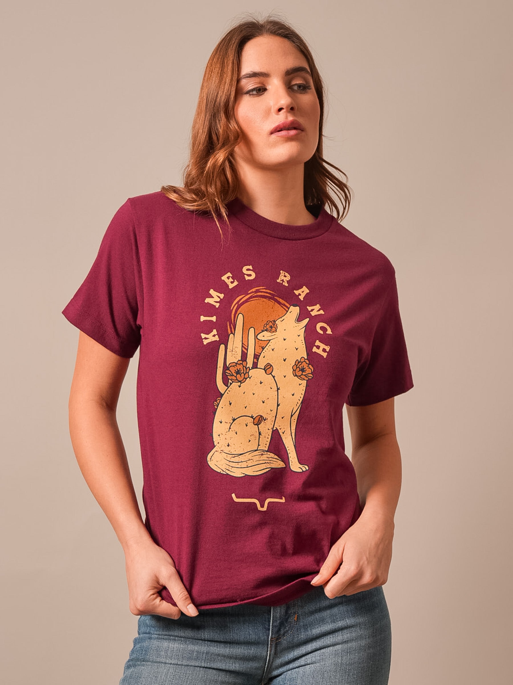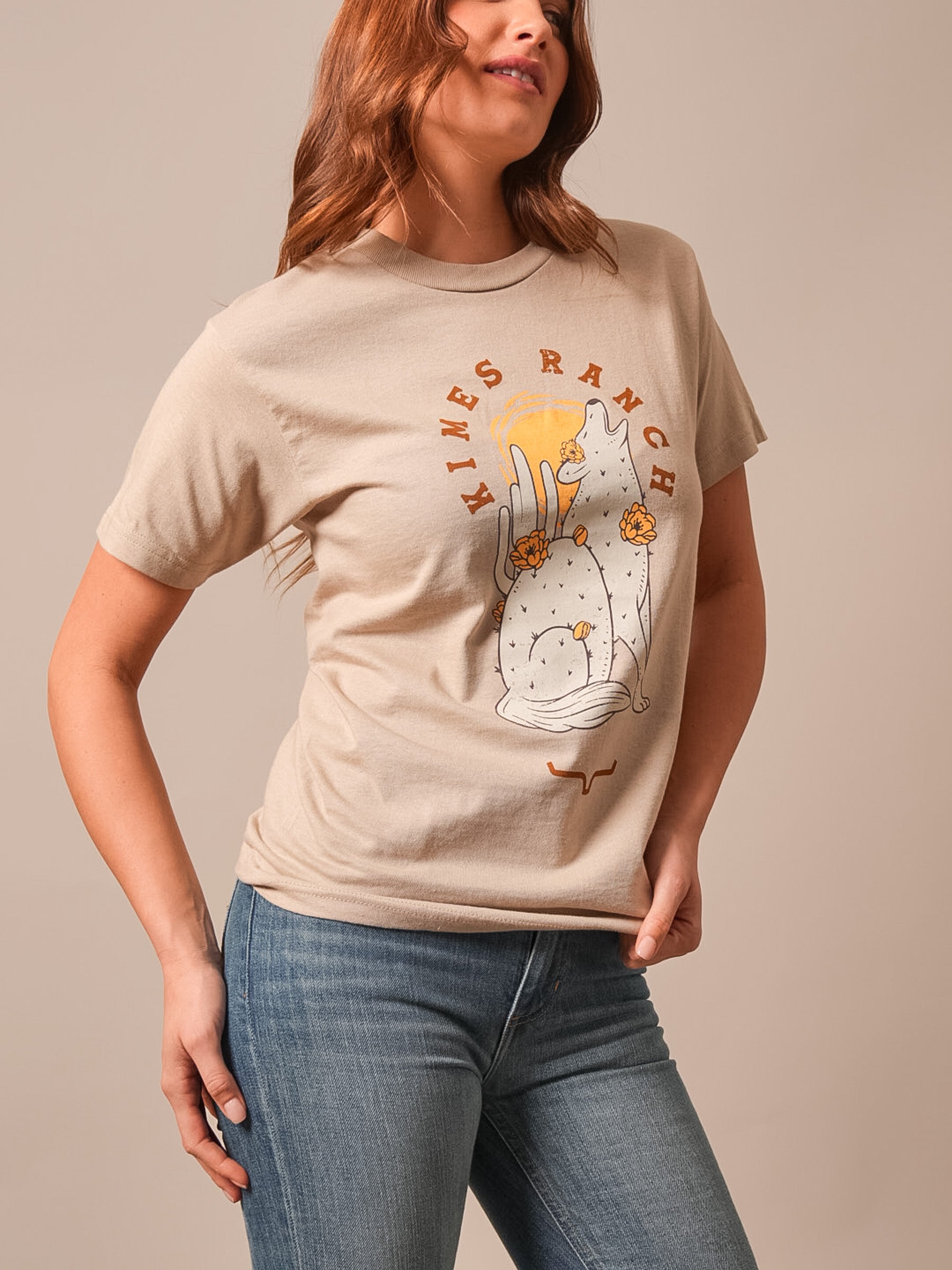 The Night Call Tee is inspired by quiet desert evenings. big western skies. and the call of a lone coyote. This soft. pigment-washed women’s tee features a striking coyote graphic that brings bold personality to an easygoing everyday fit. With a lived-in feel from the first wear and a relaxed. flattering shape. it delivers effortless cowgirl style made for slow sunsets. open roads. and nights spent under the stars.