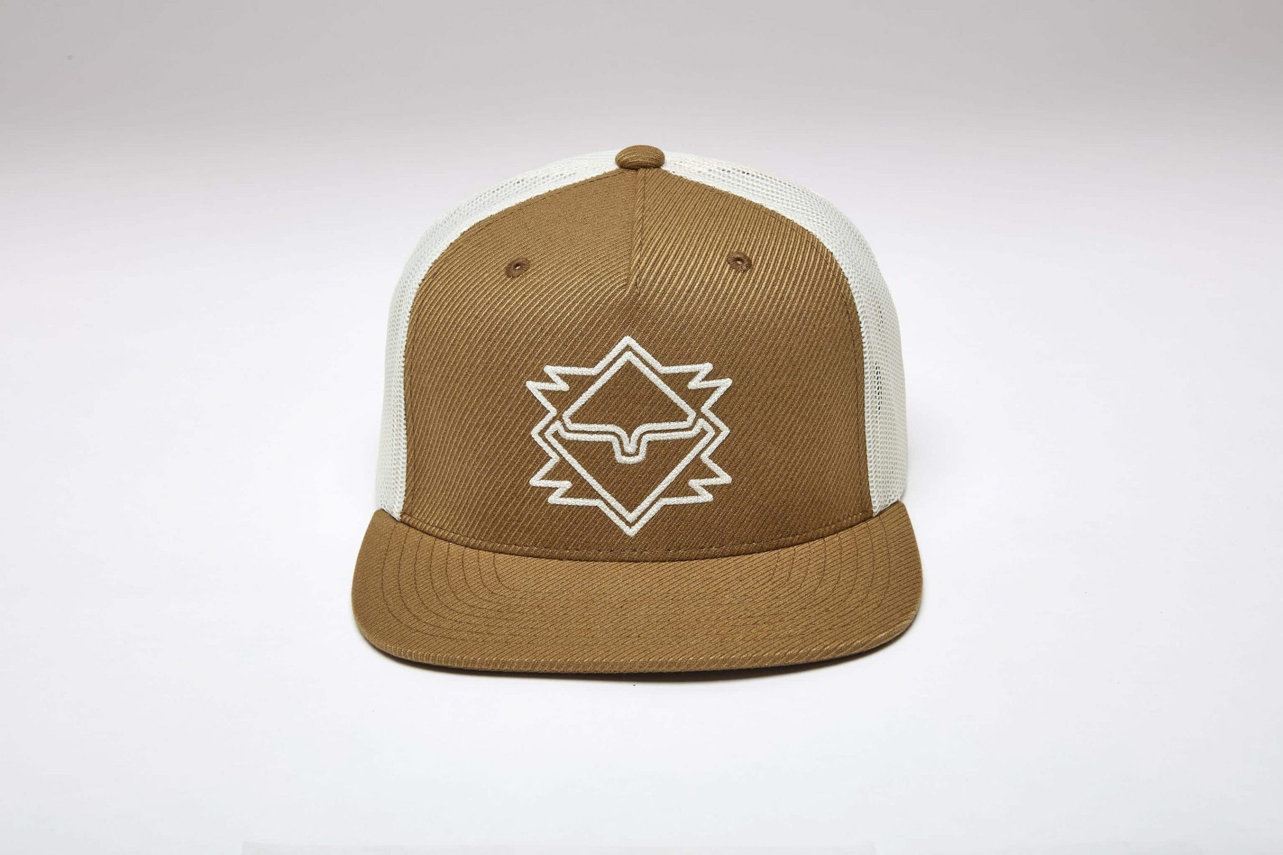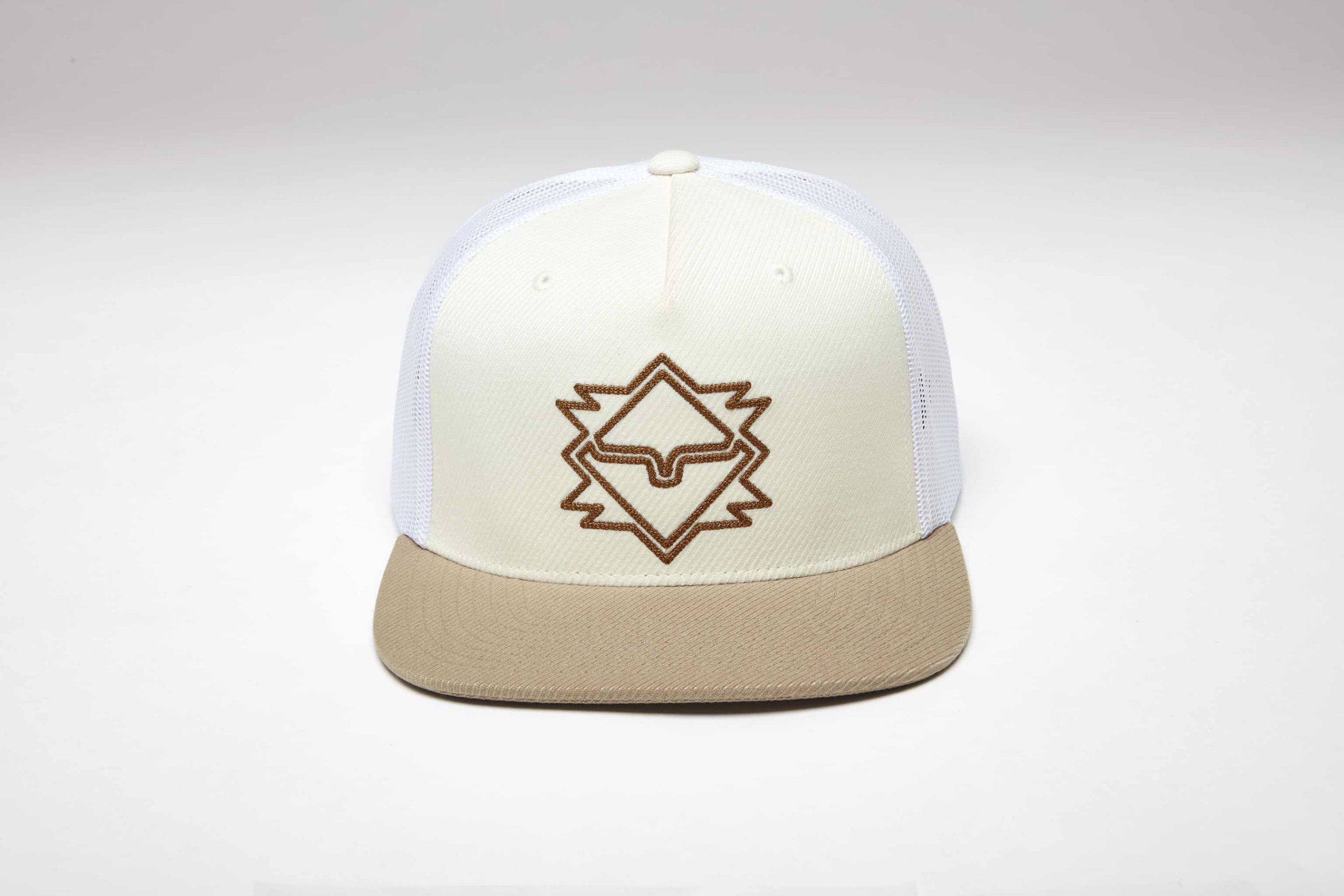 The North Star Hat captures Western heritage through a modern lens. This structured 5-panel ranch hat is crafted from durable twill and designed with a high-profile fit and flat bill for clean. confident style. Flat chain stitch embroidery brings a bold Southwestern-inspired Kimes Ranch design to the front. celebrating classic craftsmanship with a contemporary edge.
