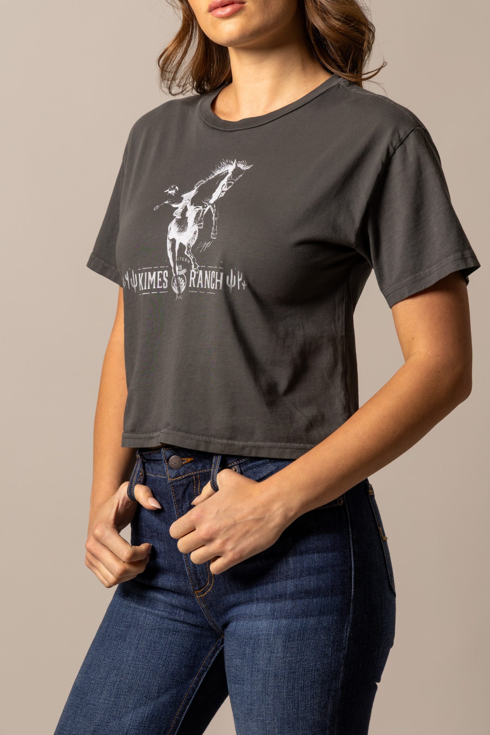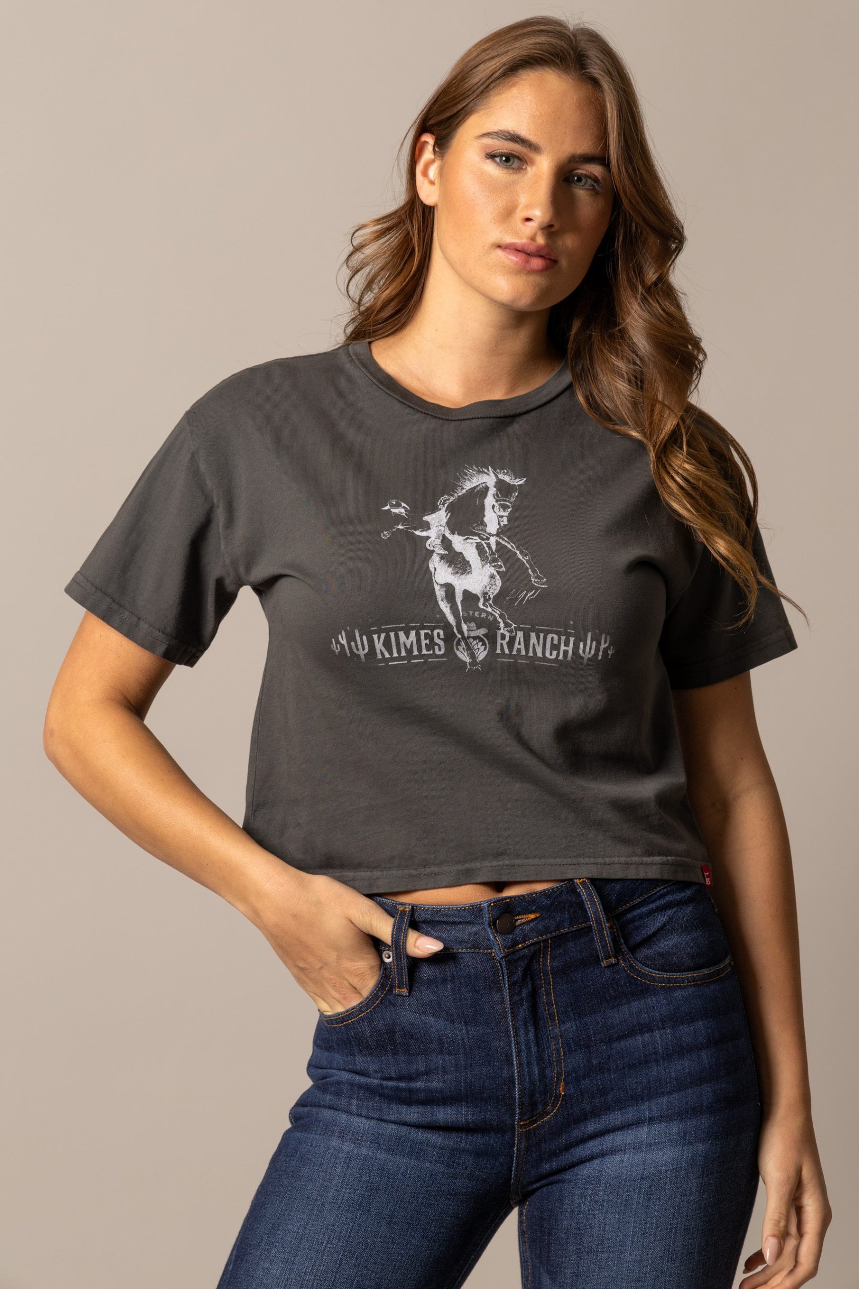 The RP Bad Day Crop Tee tells the story every cowgirl knows—sometimes the ride gets rough. but that’s where the grit shows. Featuring a powerful bucking horse graphic designed by renowned Western artist Randy Paul. this tee embodies the wild. unfiltered energy of rodeo life. Crafted from soft. ring-spun cotton with a relaxed cropped fit. it’s as comfortable as it is bold. Even a bad day in the saddle beats a good day anywhere else.