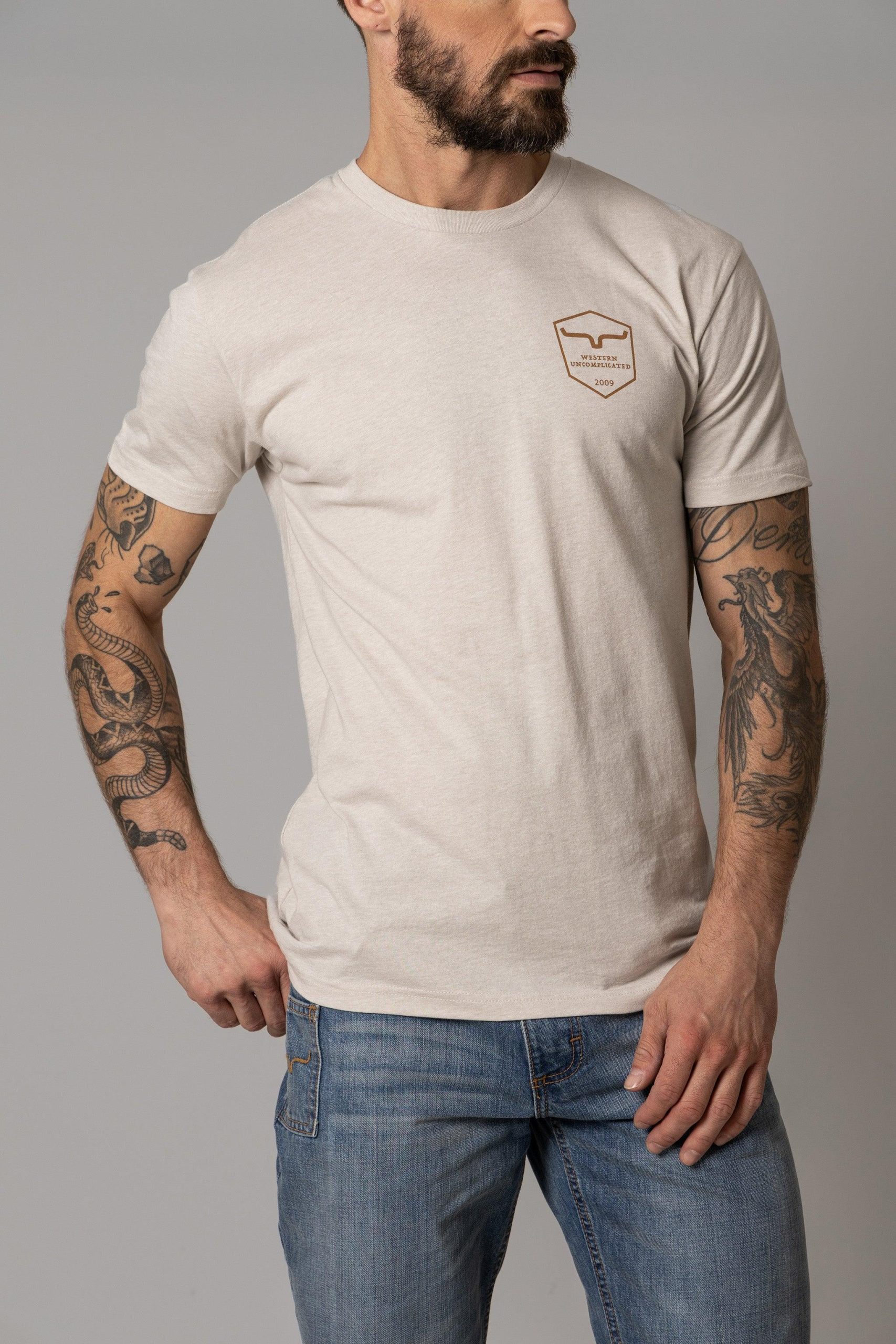 Details: Men’s Short Sleeve Tee with American Kimes Logo Print on Chest & Clip Label at Left Hem