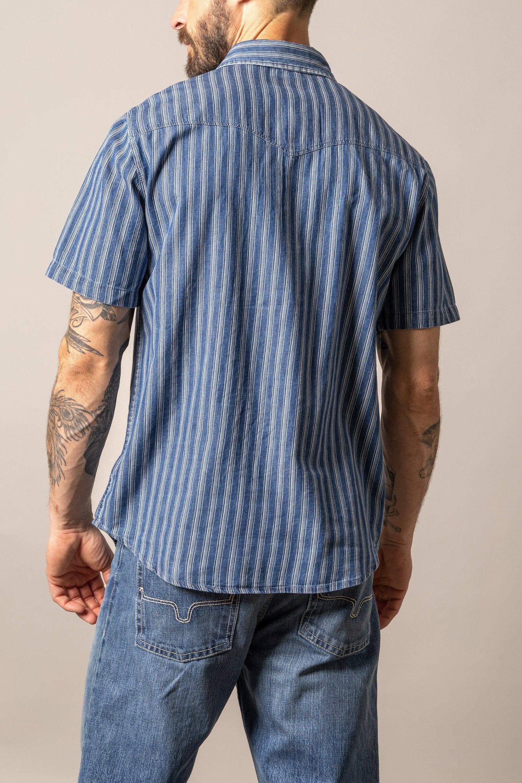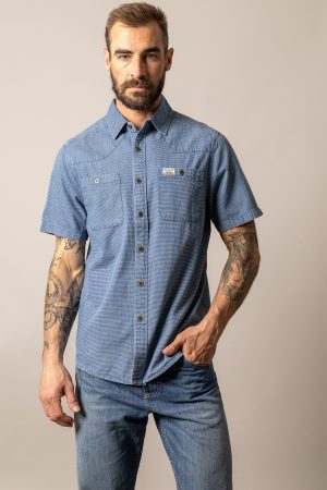 Experience timeless style and rugged comfort with the Shifter a men’s chambray short sleeve button-up. Crafted from premium denim chambray. this versatile shirt offers a distinctive look. exceptional durability. and security with its metallic buttons. Available in a variety of solid. stripe. and plaid color options. this shirt allows you to express your unique style.
